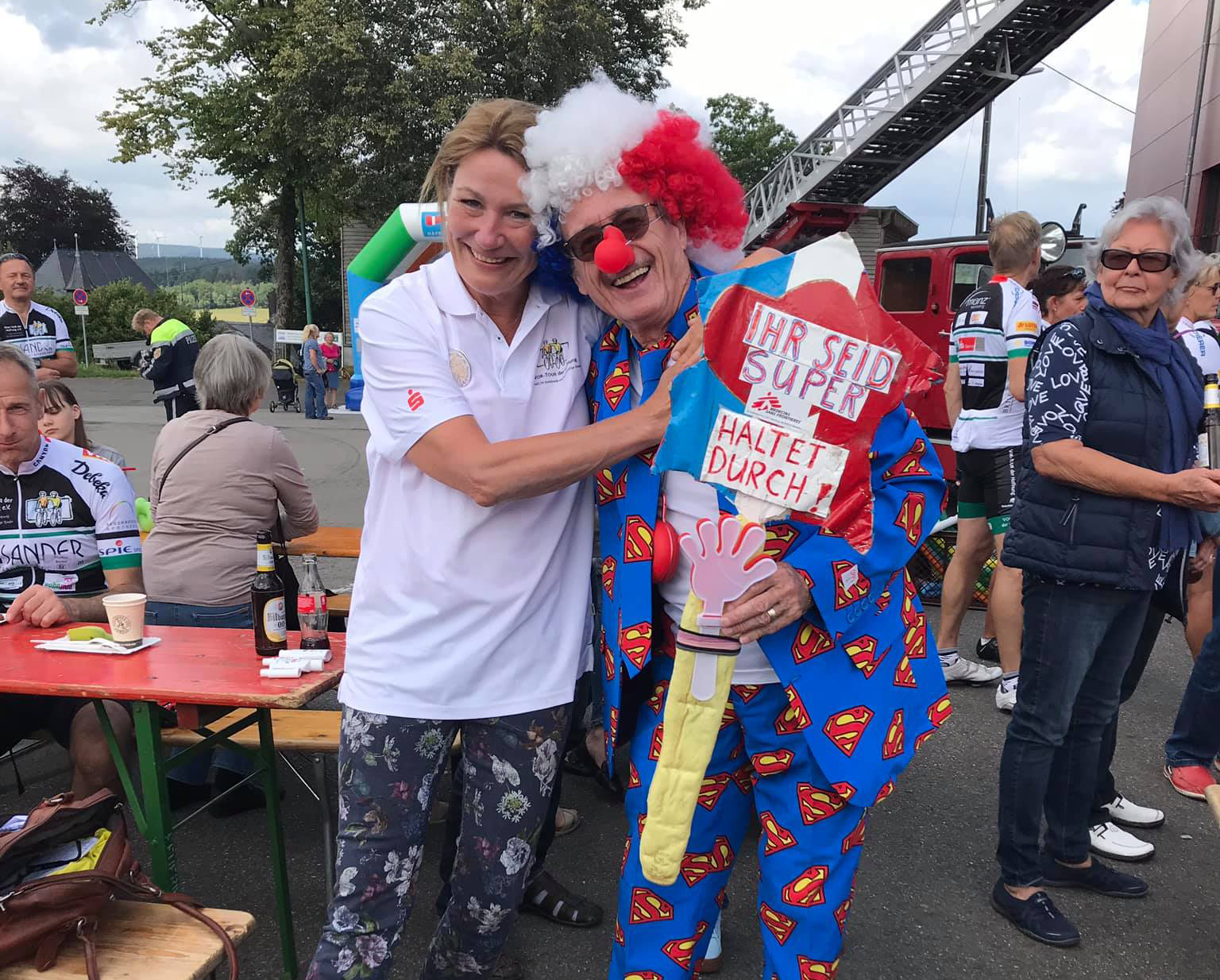Zur Stärkung gibt es für die Radfahrer Currywurst und kalte Getränke. Auf der Bühne werden dann die Spendenschecks überreicht. Das ganze Jahr über wurde bei verschiedenen Gelegenheiten gesammelt. So hat die Frauengemeinschaft St. Nikolaus aus Greimerath den Erlös ihres Osterbasars gespendet, der Karnevalsverein aus Mandern die Eintrittsgelder der Kinderkappensitzung. Das Resultat: insgesamt 7800 Euro aus Kell und Umgebung.